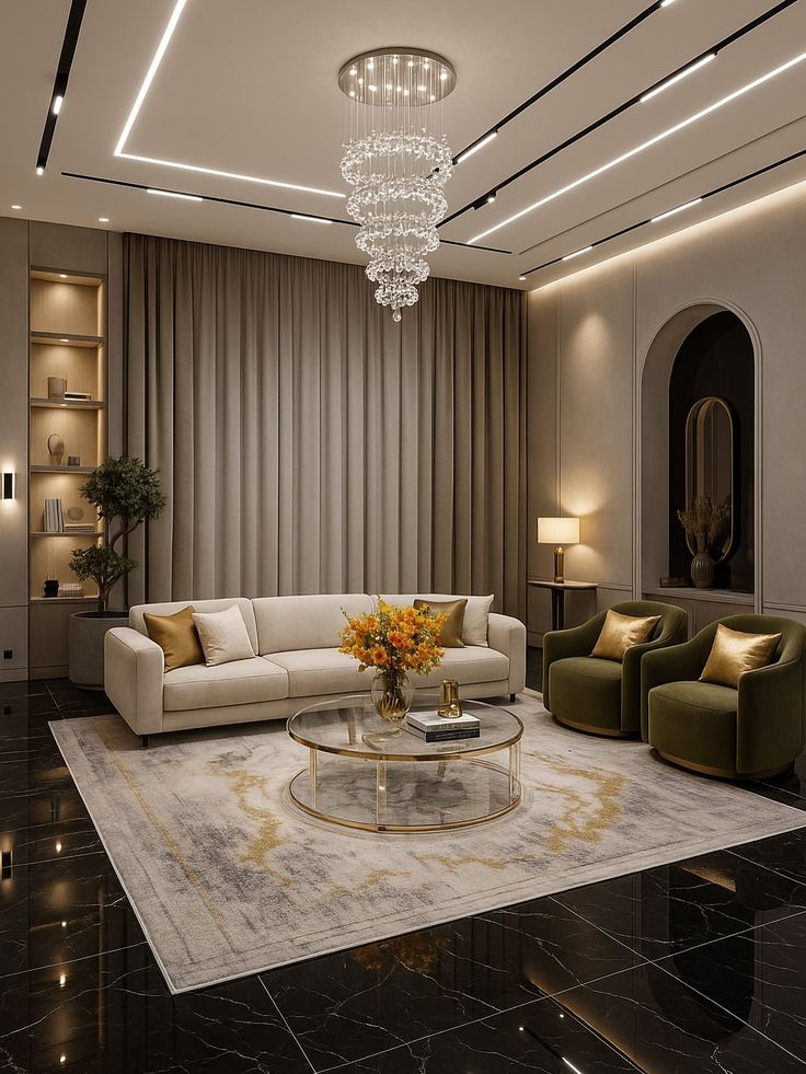 Lighting changes everything. Modern Sharjah living rooms focus on layers:
